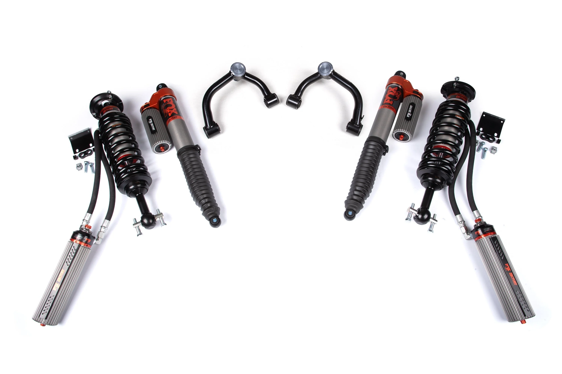 Up front the lift kit includes FOX Factory Race Series 3.0 coil-over shocks and heavy duty tubular upper control arms for increased strength. In the rear this kit utilizes a matching set of FOX Factory Race Series 3.0 shocks for the smoothest ride.