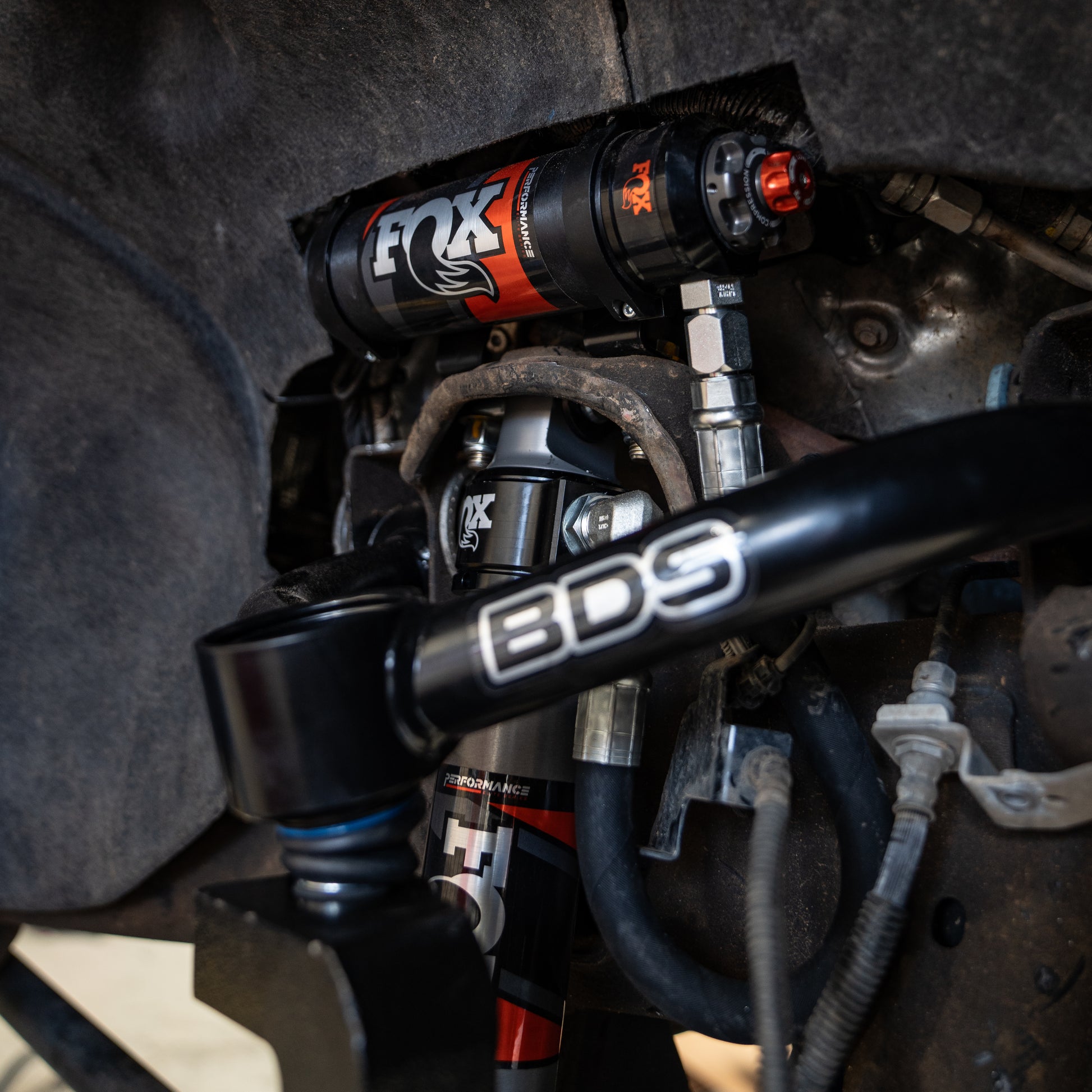In the rear BDS offers replacement lift blocks and u-bolts to lift and level that stance. The lift block installs in place of the stock block and retains ride quality and load capacity. Also included, BDS supplies brake line and ABS line relocation brackets allow the use of factory brake lines. Lastly are a matching set of NX2 Nitro or FOX 2.0 Performance Series shocks.
